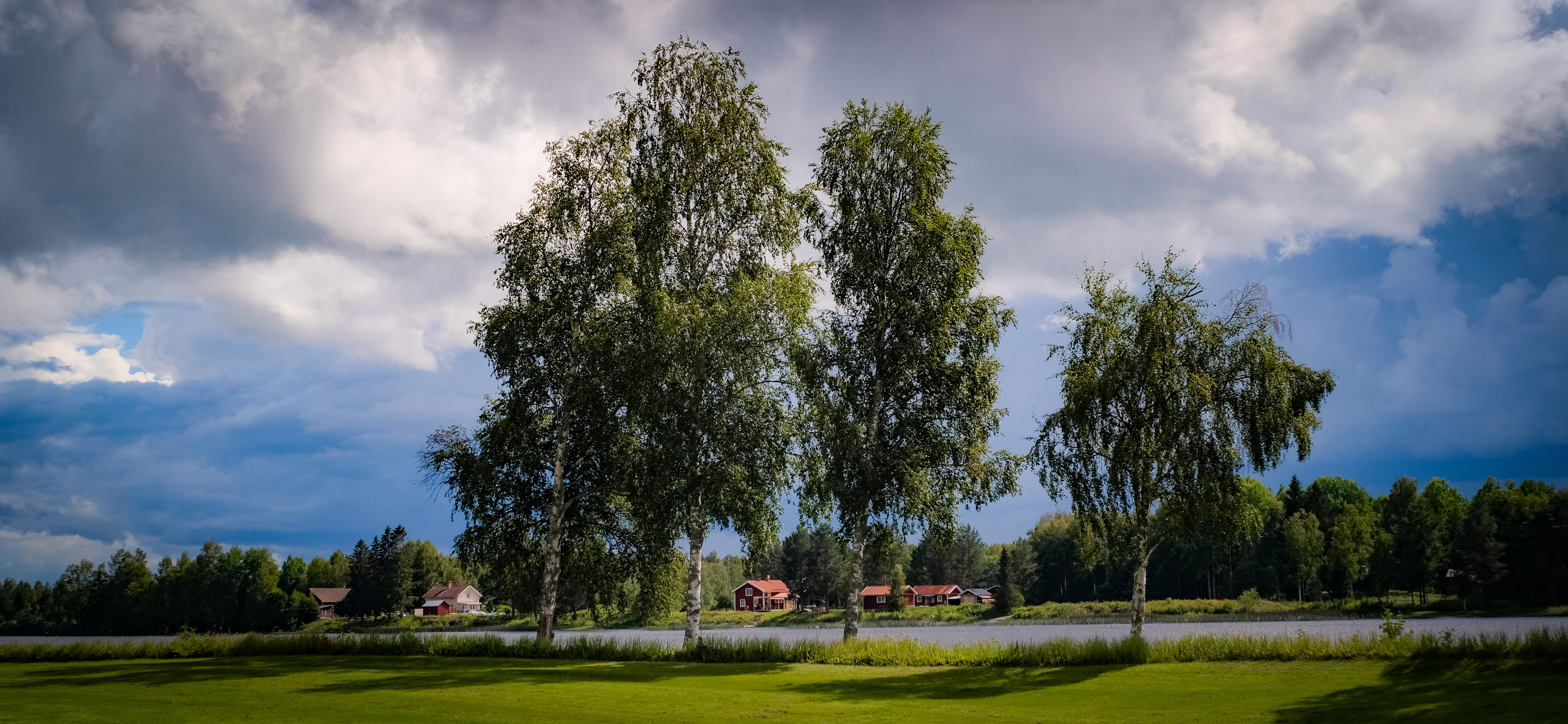 Efter nio hål började åskan närma sig. På apparna visades blixtnedslag både norr och söder om oss och himlen var ordentligt hotfull. Vi hörde muller på avstånd – men bestämde oss för att fortsätta, med hög beredskap för att bryta. Hålen gick nu ner mot och längs med Ljusnan ett tag. Väldigt vackert.