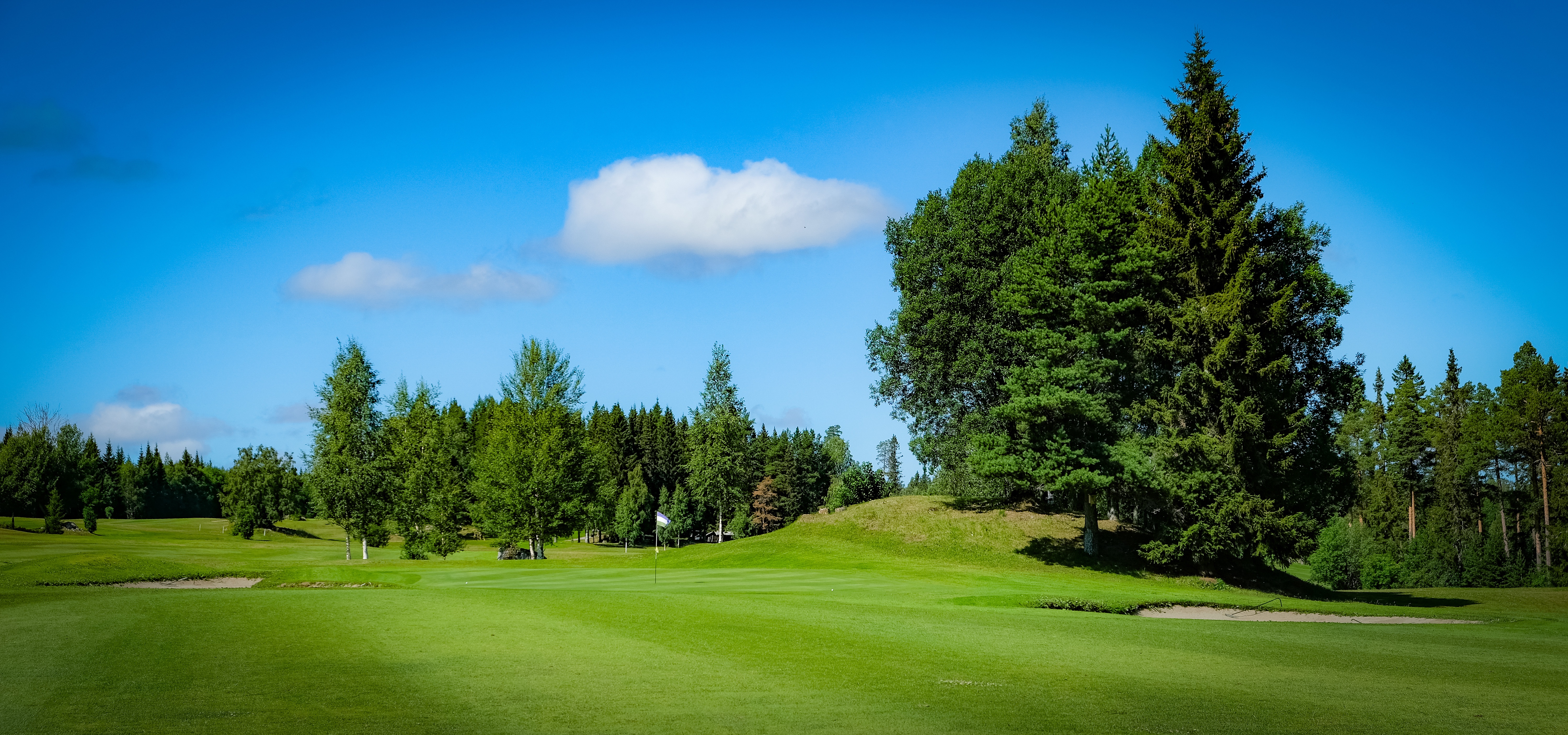 Banans skick var minst sagt väldigt bra. Gräset var fint på alla ytorna på banan. Greenerna var riktigt fina och – lite oväntat – ganska svåra att läsa. Det var mer än en gång jag läste greenen helt fel. Tror att de kuperade omgivningarna lurade mitt balanssinne lite. Några greener var dessutom rejält vågiga (ondulerade) vilket gjorde att mina puttar var både högt och lågt.