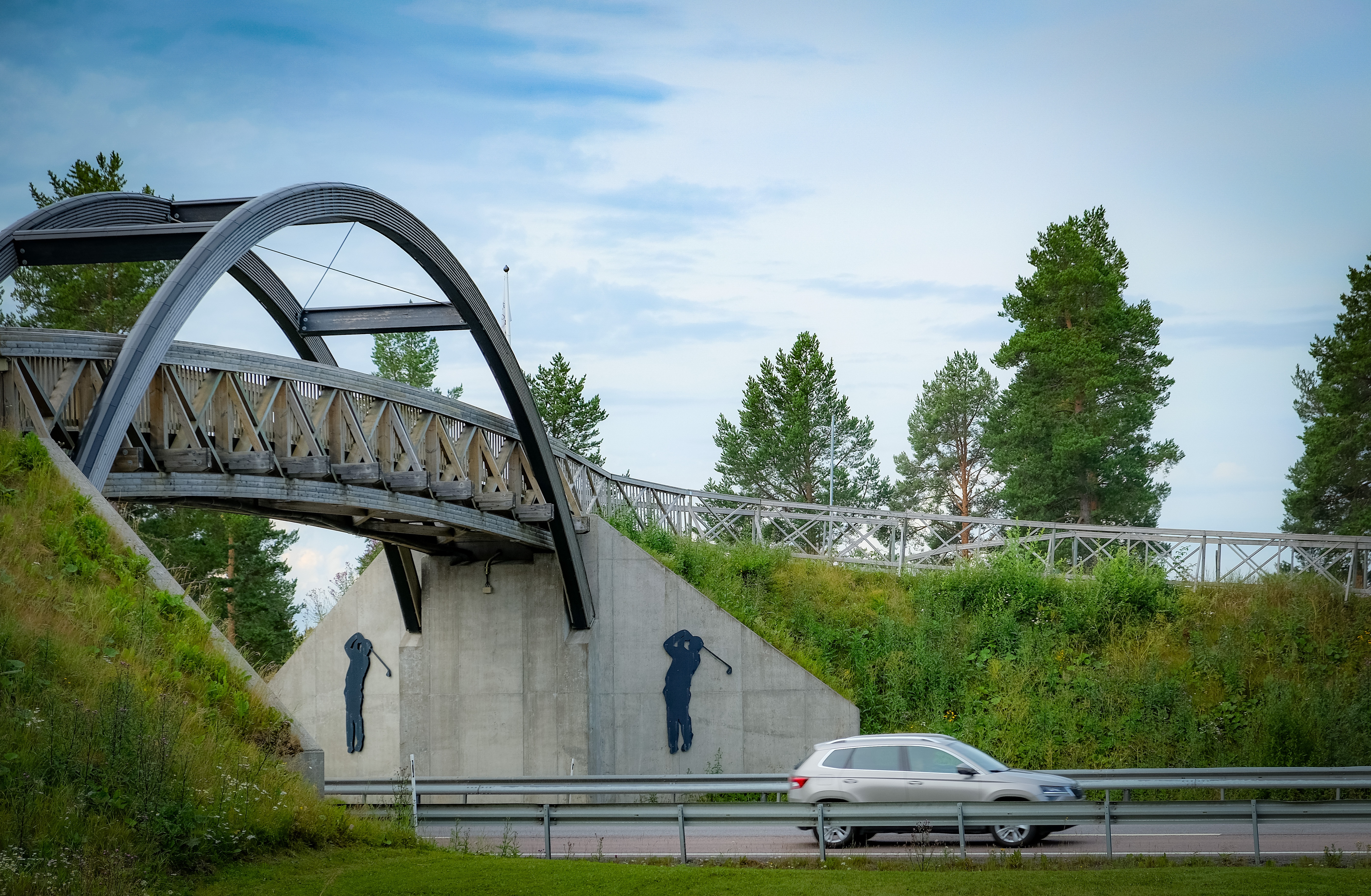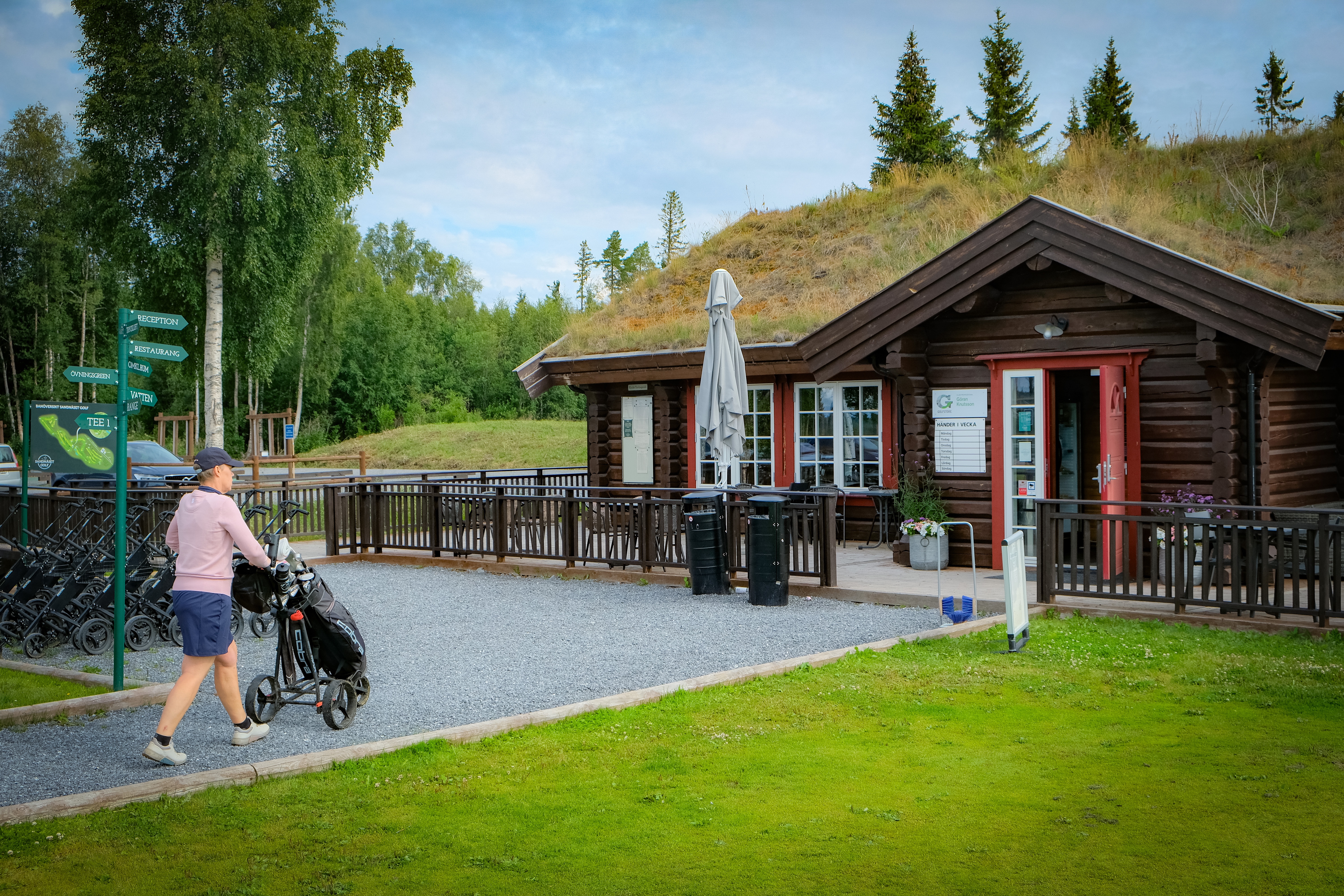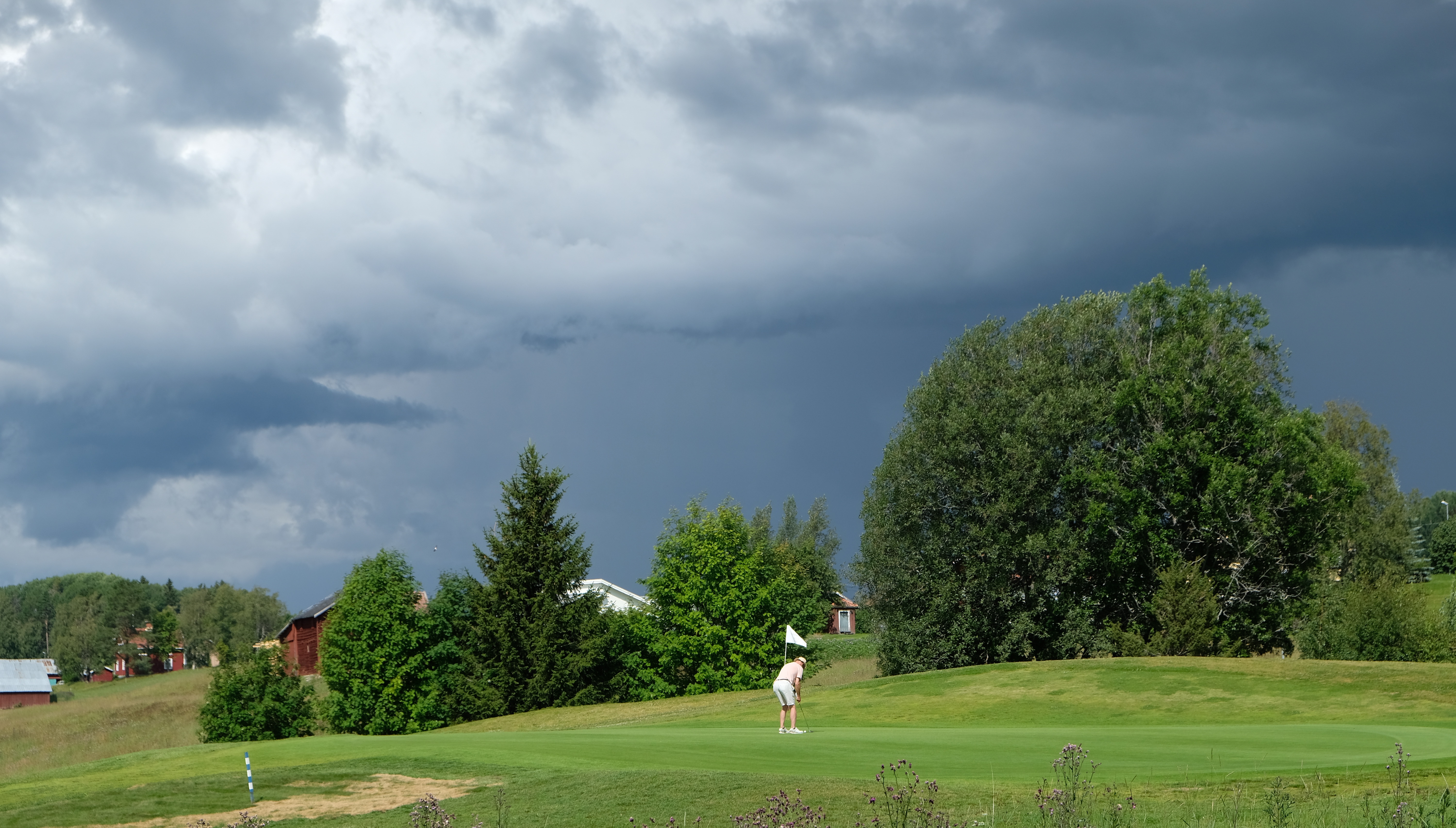 Till banan då. Man får knalla över E14 på en fin bro för att komma till själva banan. På vägen över bron upptäckte jag att min Garmin Fenix 6 inte hittade banan. Detta är en klocka som har förprogrammerade banor och jag kan inte plocka ner fler banor än de som finns där redan (om någon vet om det går så hör gärna av er). Det tog mig ett tag att förstå att banan var den gamla Krokom-banan – som fanns i klockan. Dock hade hålen en annan numerering och det ver lite lotteri om jag kunde mäta avstånd eller ej. Konstigt vad lätt man blir beroende av tekniska hjälpmedel. På 1980-talet när jag började spela golf var det bara 150-meterspinnen som gav en ledtråd hur långt det var kvar. Tror egentligen aldrig att jag ens funderade på hur många meter det var kvar då. Man bara kände det i kroppen. Kanske något man borde tillämpa oftare…