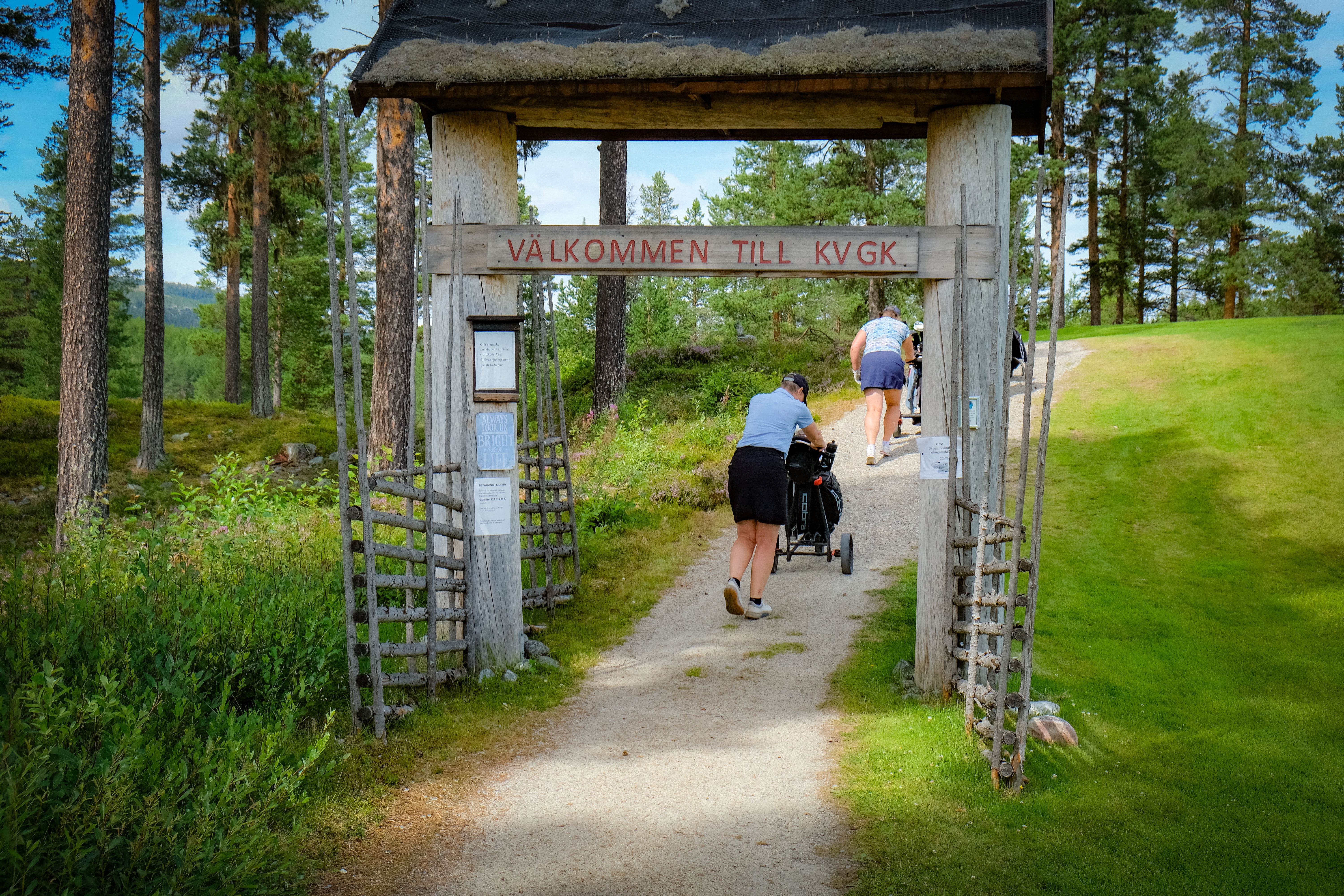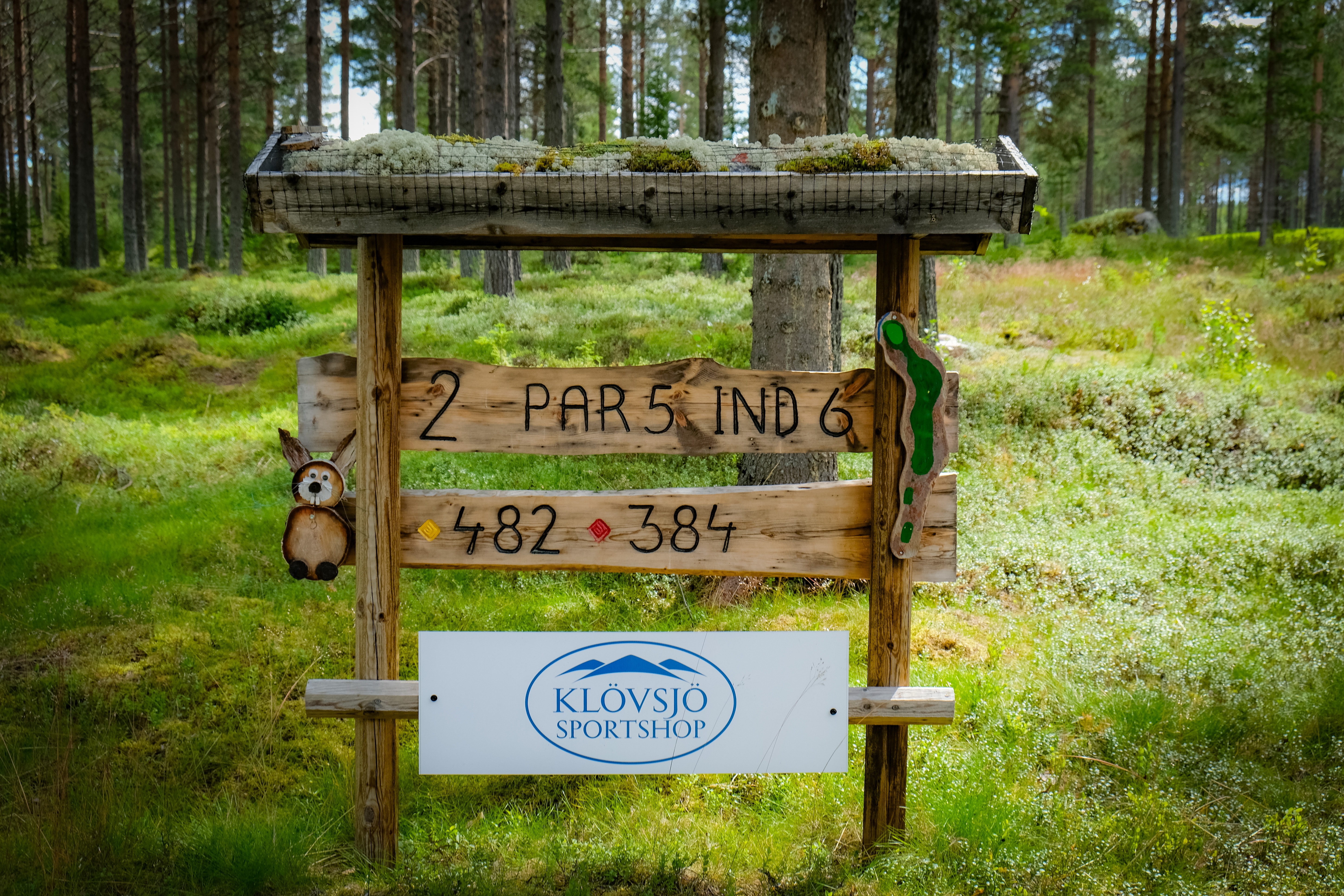 Banan är definitivt klassad som en kuperad skogsbana i min bok. Både kuperad och skog är understruket. Det kan vara klokt att ha myggspray med sig i bagen och även ordentligt med vatten. Jag kan inte påminna mig att jag stötte på någon påfyllning ute på banan. Kiosk finns efter nio hål med klassiskt utedass. Allt pyntat i sann Pett’son och Findus-anda.