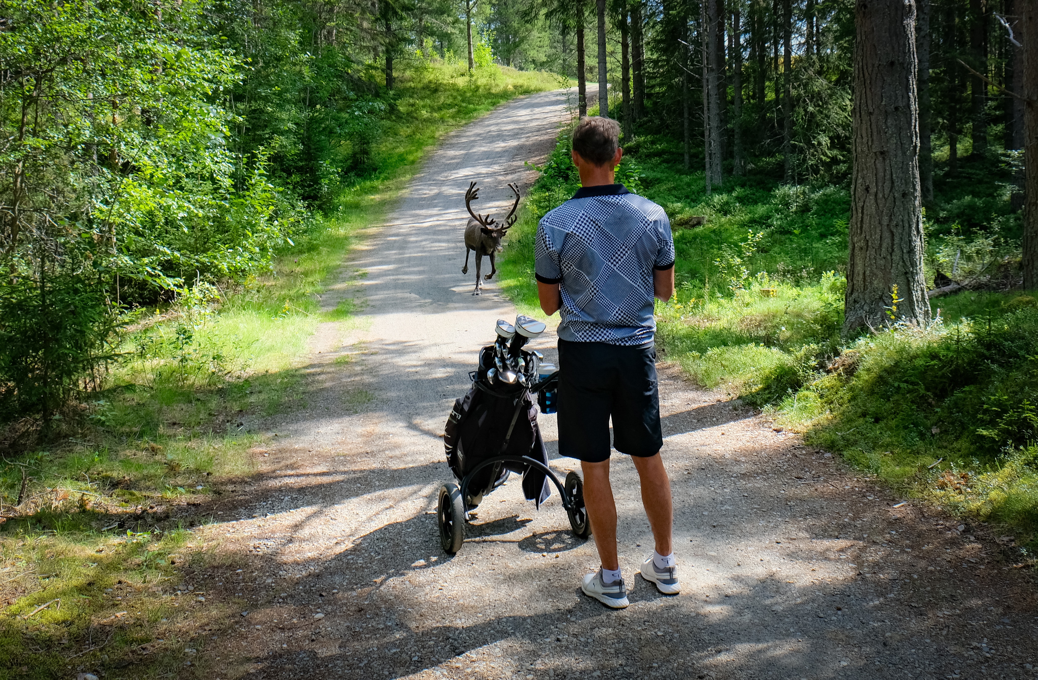 Greenerna var ärligt talat inte lysande, men övriga delar var helt ok. Renarna kom och gick lite här och där längs banan (det måste påpekas att de inte på något sätt är aggresiva eller farliga…). Vyerna är bitvis spektakulära och inget man är van vid på en golfbana (om man kommer från Skåne eller Östgötaslätten).